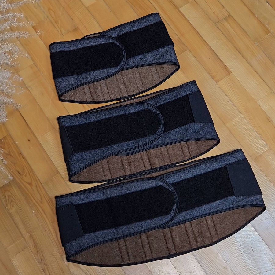 По конструкції ортопедичні пояси з овечої, собачої та верлюжої шерсті - однакові і відрізняються лише внутрішнім шаром, що безпосередньо контактує з тілом.