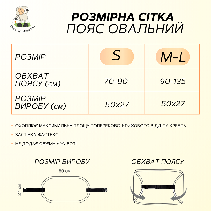 Овальный пояс из овечьей шерсти отличается прочностью и долговечностью, имеет толщину ворса семь миллиметров. Изделие оснащено особенно надежной застежкой-фастексом, которая крепко держит и не добавляет объема в области живота. При этом высота пояса охватывает максимальную площадь тела в области поясницы.