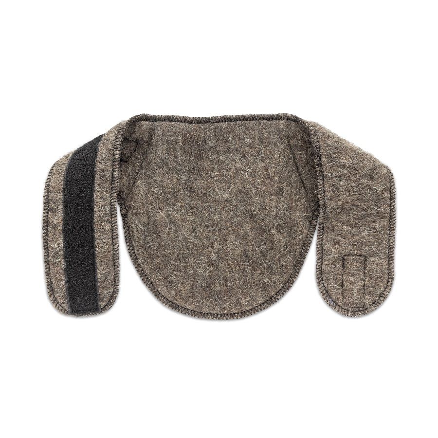 Согревающий воротник имеет толщину ворса семь миллиметров, застегивается на мягкую, но надежную липучку, благодаря которой можно регулировать объем. Для достижения максимального тепла, изделия нужно плотно обворачивать вокруг шеи. Натуральная шерсть является воздухопроницаемой и может поглощать влагу, поэтому изделие идеально подходит для ежедневного применения на протяжении целого дня. Удлиненная часть воротника применима как на спину, так и на грудь.